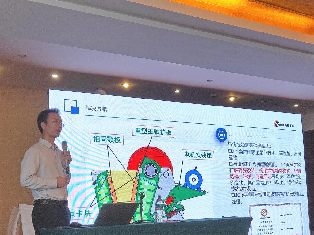 會上,南昌礦機研發(fā)中心總監(jiān)詹春生發(fā)表了題為《大型化短流程碎礦工藝技術(shù)》的演講。演講提到,隨著礦石的持續(xù)開采,品位越來越低,人工成本越來越高,為降低能耗,減少運營成本,維持盈利,市場對于性能穩(wěn)定、操作簡單、維護方便的大型化、大破碎比、智能化裝備的需求越來越明顯。在打造綠色礦山、智能礦山的大趨勢下,要實現(xiàn)節(jié)能環(huán)保高效,優(yōu)化流程是關(guān)鍵。南昌礦機使用先進流程軟件設(shè)計出的流程精準(zhǔn)、快捷,搭配上南昌礦機擁有大破碎比、高篩分效率、高處理量特點的大型化裝備,可實現(xiàn)短流程優(yōu)化的目的。
